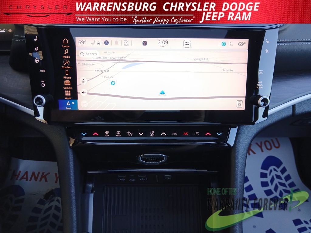 Step inside and be captivated by the refined Capri Leatherette interior, complemented by the Disassociated Touchscreen Display and Integrated Voice Command with Bluetooth®. The advanced Uconnect 5 Nav system with a 12.3 display puts cutting-edge technology at your fingertips, while the 10-speaker audio system delivers a concert-hall experience.