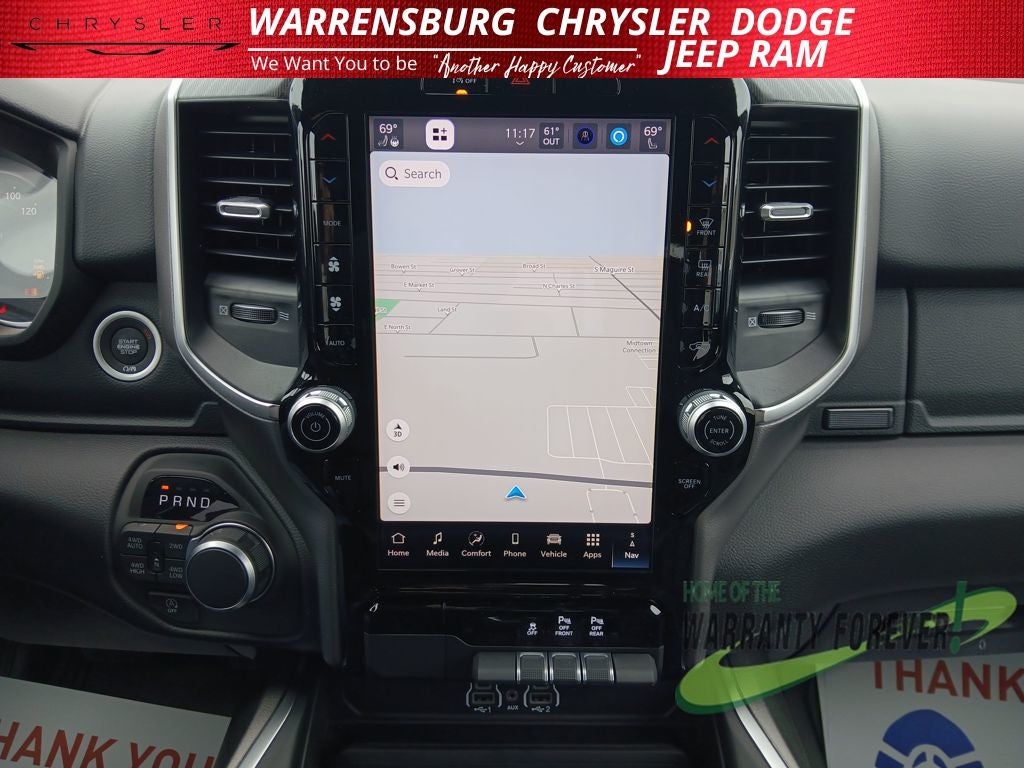 Step inside and experience the exceptional comfort and convenience of this well-appointed truck. The spacious cabin, with its Deluxe Cloth Bucket Seats and Heated Steering Wheel, provides a refined and relaxing driving environment. Stay connected with the advanced Uconnect 5 Navigation system, featuring a large 12 display and seamless smartphone integration.
