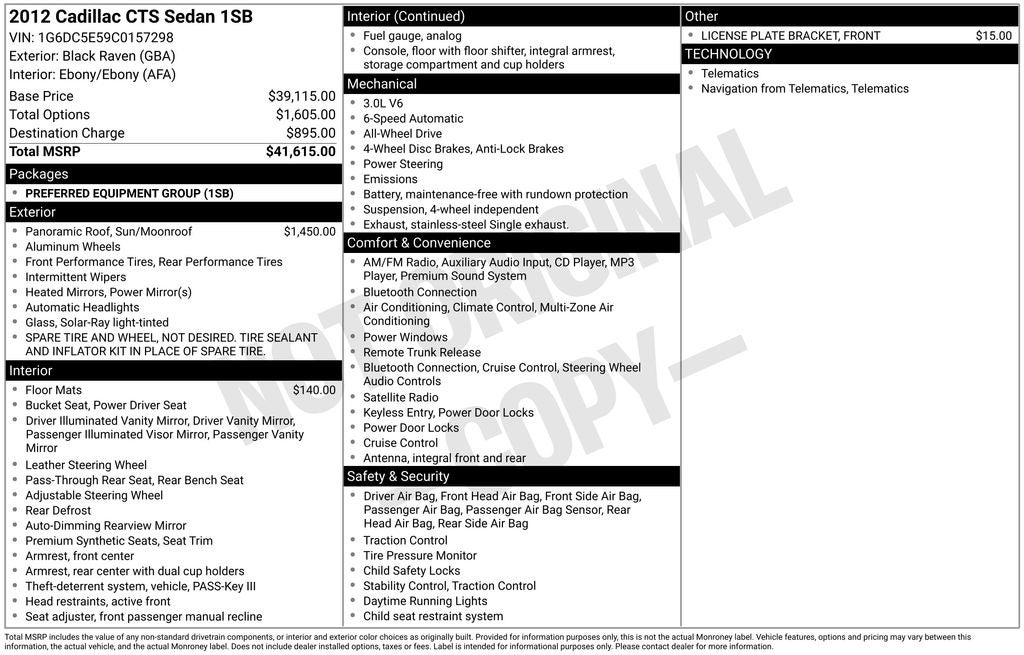 Safety is a priority with multiple airbags including front and side impact protection, stability and traction control, tire pressure monitoring, daytime running lights, and Cadillacs PASS-Key III theft-deterrent system. For added peace of mind, this CTS includes a 3 Month / 3,000 Mile Powertrain Warranty covering the engine, transmission, and drive assembly.