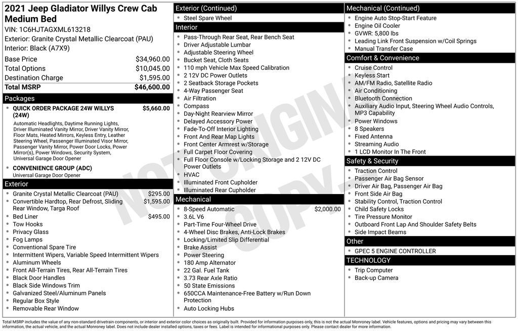 - Vehicle Name: Jeep Gladiator