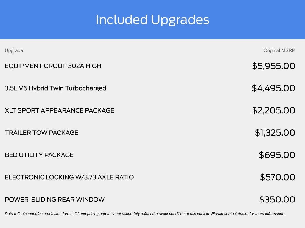 Inside the spacious SuperCrew cabin, youll find Black Sport 40/Console/40 seating, power windows and door locks, keyless entry, remote start, dual-zone climate control, tilt and telescoping steering column, and a large touchscreen infotainment system with SYNC 4. Apple CarPlay, Android Auto, Bluetooth® connectivity, voice recognition, FordPass Connect, and a premium sound system keep you connected on every drive. The rear seating area offers generous passenger room, making this F-150 just as comfortable for family trips as it is capable on the jobsite.