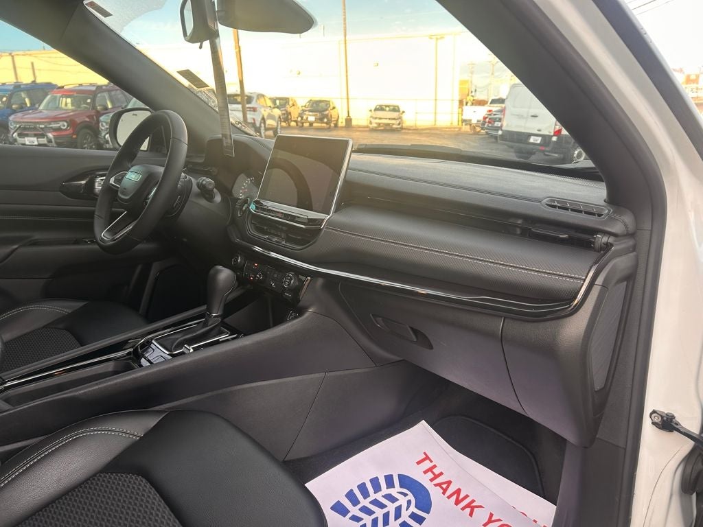 Safety is another strong point. This Compass Altitude includes blind spot monitoring, lane departure warning, lane keeping assist, front collision mitigation, driver monitoring alert, cross-traffic alert, traction control, stability control, multiple airbags including front, side, knee, and curtain airbags, child safety locks, and tire pressure monitoring. These advanced driver-assist features are highly searched by families and daily commuters alike.