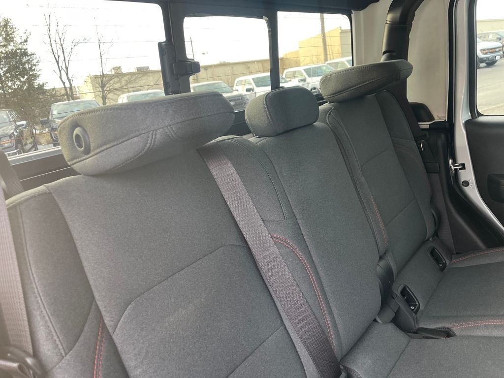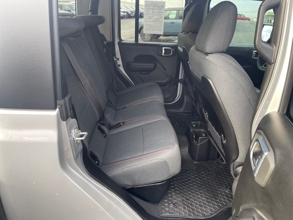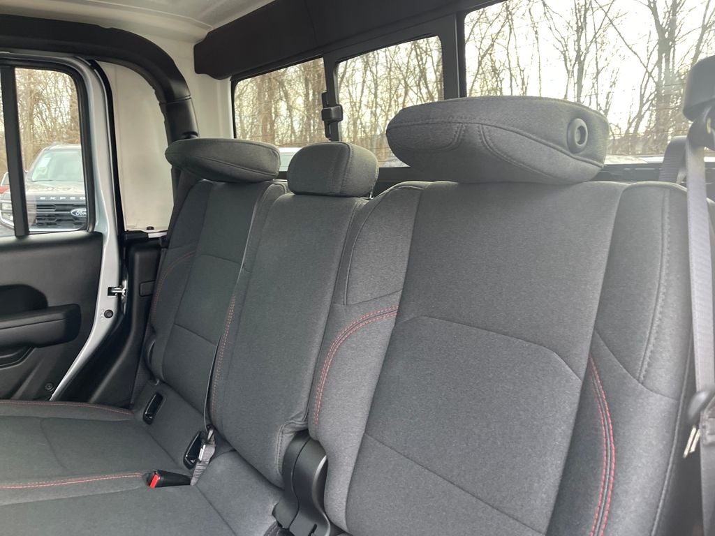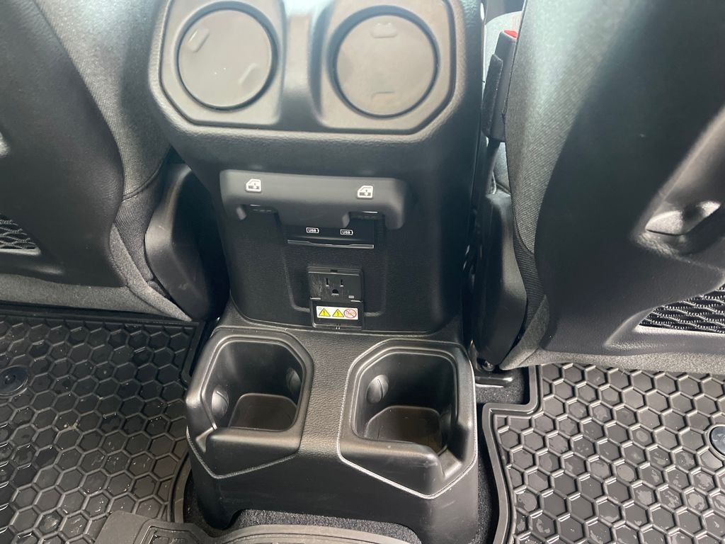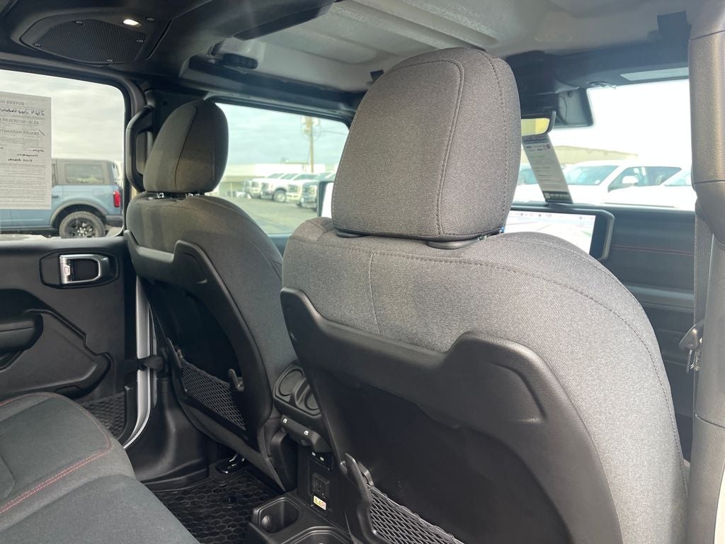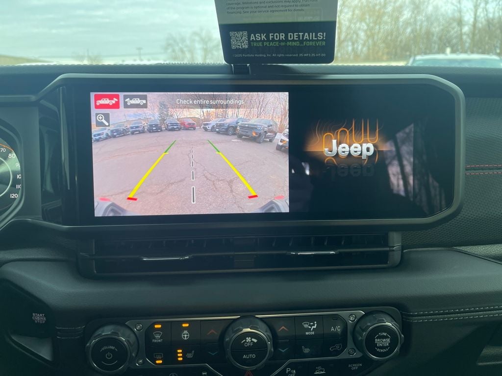 Inside, the cabin is modern and functional with a large 12.3-inch touchscreen, Apple CarPlay and Android Auto, navigation, premium audio, and Wi-Fi hotspot capability. Comfort features include heated front seats, a heated steering wheel, dual-zone automatic climate control, adaptive cruise control, and smart storage throughout the Crew Cab interior. The removable roof panels and open-air design keep the true Jeep experience intact.