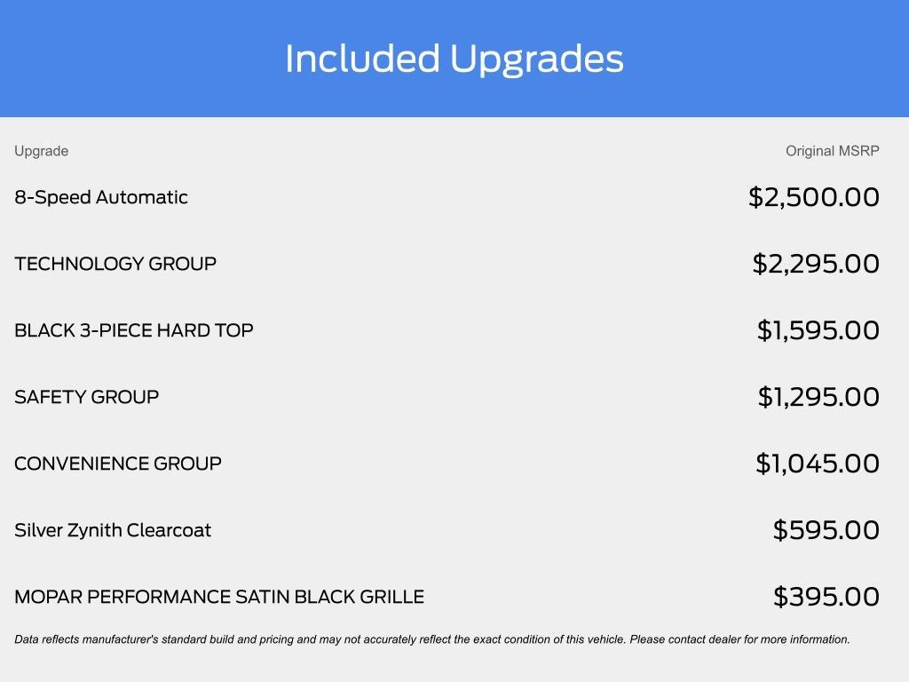 Finished in Silver Zynith Clearcoat with a Black interior, this Rubicon stands out with classic Jeep styling and trail-ready hardware. Power comes from the proven 3.6L V6 paired with an 8-speed automatic transmission, delivering smooth on-road manners and dependable power off the pavement. Jeeps part-time four-wheel drive system, locking front and rear differentials, and Rubicon-specific suspension and axle ratios make this Gladiator a true off-road machine straight from the factory.